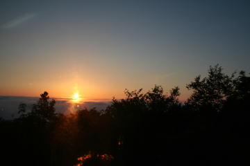 ちょうど夕暮れ時で、雲海に沈む夕焼けが輝いていた。車中はカメラを向けて写真を撮る人が多く、運転手は気を利かせてよいポイントで車を停めてくれた。おかげで雲海の夕陽をカメラに収めることができたことは幸運であった。